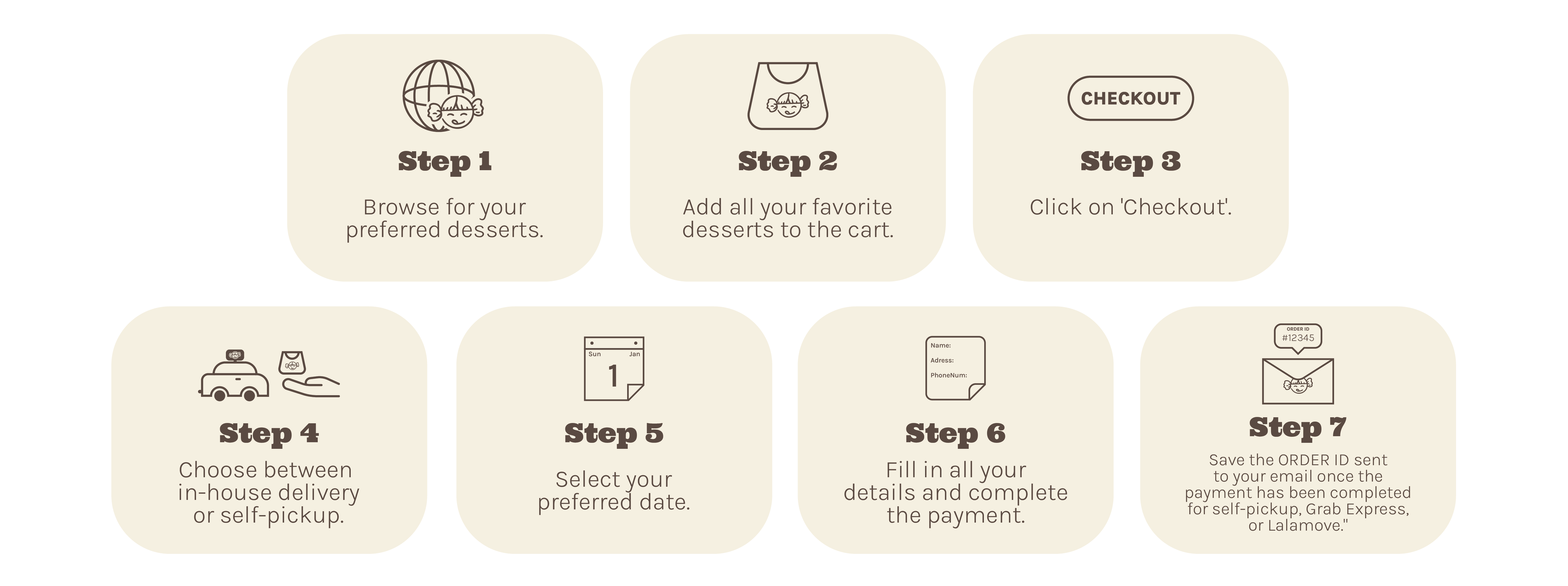 You can order anytime before 48hours in advance! Some cakes are available for next-day delivery/pick-up, while others require a two-day pre-order. Feel free to reach out our customer service through WhatsApp or Instagram!